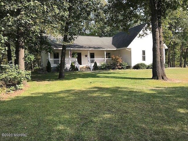Don't miss your chance to see this spacious, beautifully maintained ranch home on over an acre! Huge covered front porch, great for entertaining or simply relaxing and enjoying! Open, unique floorplan with cathedral ceilings and interesting architectural design features. Large living area with cozy gas log fireplace open to the dinning area that adjoins the kitchen. Plenty of cabinetry, two pantries, and a handy breakfast bar that doubles as a serving area for gatherings! Large master suite with walk-in closet, and slider to an elevated deck overlooking the wooded back yard. Finished basement with a second living area, game room, and 4th bedroom with egress window. Handy main floor laundry makes clothes washing a snap. Buyer and buyers agent to verify all information.