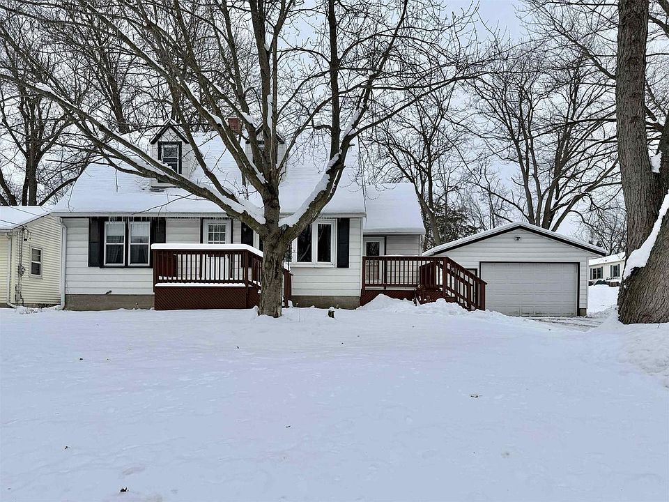 Welcome home to this adorable Cape Cod on a half acre in the quaint community of Shopiere, Town of Turtle, and the Clinton School District. This 3 bedroom 1 bathroom home offers a cozy layout with a first floor bedroom, spacious bathroom, and a first floor laundry. Open floor plan into The bright formal dining room and living room. Enjoy the spacious half acre yard, a newer two car detached garage built in 2011. Easy access to I 90 and centrally located between Beloit, Janesville and Clinton. Cute as can be and ready for its next owner.