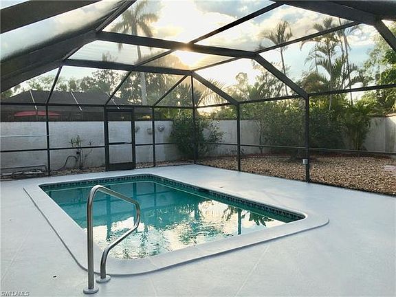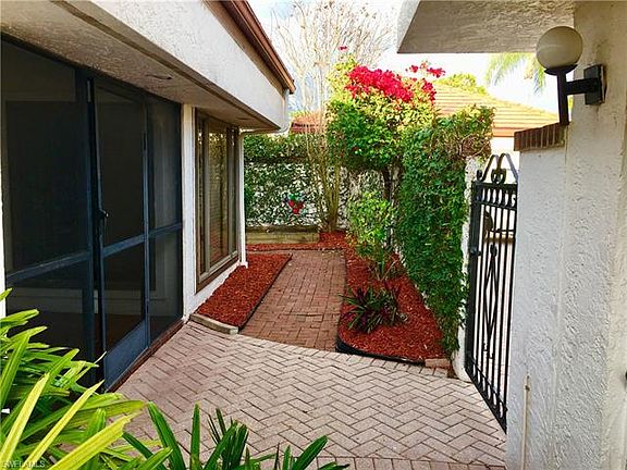 Beautiful gated community in Pinebrook Lakes called Harbour Castle just off Daniels and US 41 is available NOW! This home offers 2 bedrooms, 2 large baths, large 2 car garage, open living area with vaulted ceilings overlooking the caged pool with SW exposure. This home is a single family home with a privacy wall allowing privacy for you and your neighbors. The home has a privacy gate before entering to the front door with a mature garden on all 4 sides of the home, sliding glass doors off the dining area and the living area allowing tons of light to pour in. Master bath offers a large soaking tub and separate shower with private potty room. Huge closets, breakfast nook in kitchen, granite countertops and stainless steel in the kitchen plus an oversized wet bar in the living area. Washer and dryer included plus all hard surface flooring-NO CARPETING! This is an awesome community nestled behind Bell Tower Mall, walking distance to Fort Myers finest restaurants, shopping and so much more! Pets welcome!