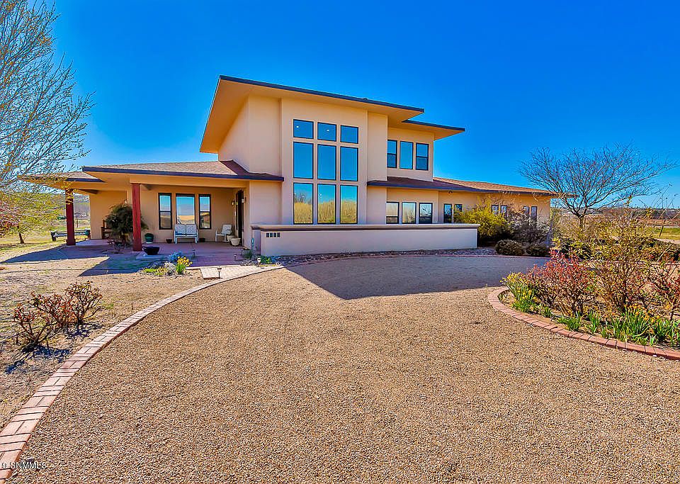 Luxury, space, and views situated just north of Mesilla! This Frank Lloyd Wright inspired home has everything you could hope for! Situated on 1.23 acres of land, this 2008 home has 3 bedrooms, 2.5 baths, a split floor plan, loft area, granite throughout, and a 3 car garage plus a detached workshop / additional garage space with 220 electric and water. Did we say views? This home has views from every room in the home! The open floor plan would be a great place for entertaining while enjoying the breathtaking views of the Organ Mountains. The kitchen features all stainless steel appliances, granite counter tops, and beautifully tiled floors! The master bedroom is on the ground level and has spectacular views of the mountains, gorgeous bathroom, huge walk in closet and much more! The secluded back patio and yard will be a great place to relax and enjoy our beautiful summers. Solar, irrigation well, grape producing vineyards and fruit trees round out this amazing property!