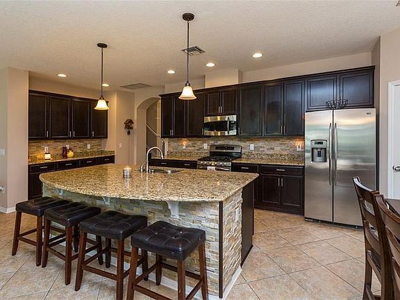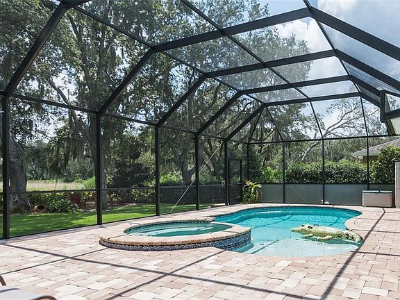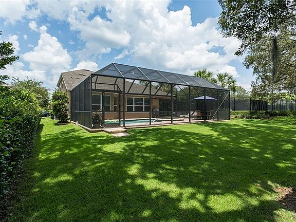 Pristine 2-story pool home that's nestled on a corner lot. This beautiful property offers 4 bedrooms plus bonus, 2.5 bathrooms, 2,836 square feet of lush living space, 2-car garage and a private lanai with pool and spa. *Spacious kitchen with custom cabinets, granite counter tops, stainless appliances with gas cook-top, lots of counter space, walk-in closet pantry and center island thats ideal for entertaining. *Open floor plan* breakfast nook with glass doors that lead out to the private lanai* easy flow into the living room with ceiling fan, lots of natural lighting and wired for surround sound.* Formal dining room has crown molding and is large enough for your family gatherings. Office with French doors and ceiling fan* Second level bedrooms with carpet and ceiling fan. Main level master bedroom features carpet, crown molding, tray ceiling and bay window.*Master bath has large double sink vanity, garden tub, separate shower and built-in closet system. * Other great features of this home are wired inside and out for surround sound, *Reclaimed Water Irrigation System, Heated Salt Water Pool & Spa w/ New Pool Pump* Gas cook-top, Water heater & Heat pump, additional electrical outlets in back and front yard for special lighting, *huge attic space and extra storage space in garage. *Community also features large neighborhood gym, clubhouse, 2 pools, tennis courts, playground, dog park and clay tennis courts. *Easy access to I-75 and only 60 minutes from Florida's top vacation destination, Orlando, Disney.