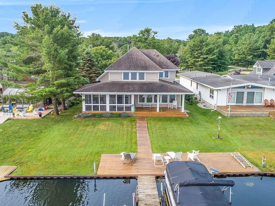 Beautiful Pentwater Lakefront Home-Located in the desirable Apache Hills Subdivision, this home includes 62 ft of lake frontage with beautiful views, a private dock and a steel seawall. Pentwater Lake is an all sports, 483 acre freshwater lake with channel access leading directly into Lake Michigan. Inside you will find a very spacious & inviting home. Enjoy peaceful views of the water from the open kitchen, dining, living area, or the screened in porch. This home features 4 bedrooms, with an additional bonus/family room, 2 spacious master suites, one on the main level and one upstairs looking towards the water. Attached and finished 2 stall garage. Call today for a private tour...