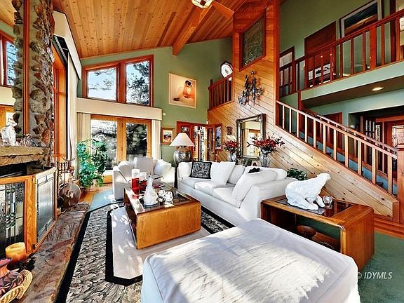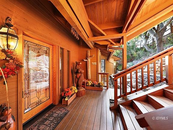 By elevator from the oversized detached two car Garage with heated snow removal entry or down a Grand Staircase, this property defies superlatives. Covered walkways lead to a captivating entrance to the Great Room revealing floor to ceiling stone hearth. Leaded, beveled and stained glass feature a gallery of awe inspiring window views. Formal Dining area with adjoining Cook's Kitchen and Breakfast Nook. Main floor Master Suite includes Jacuzzi Room, opulent Bath and walk-in Closets. Additional three Bedrooms, two on the Upper Level, the fourth on the Lowest, could convert to maid or caretaker's quarters with private entry, surround sound, bath and kitchenette. Enjoy PANORAMIC views from the over 1300 square feet multi-level, wrap around Decks illuminated by Skylights and low density custom lighting. Situated on nearly of an acre with fenced orchard and organic garden. Two water features provide a sweet, soothing symphony. Privately owned propane tank and a 3,000 gallon water storage tank available for emergencies. Could be sold turnkey furnished. Furnishings sold separately-make offers. Steps to U.S. Forest and hiking. Superb prestigious showcase property.