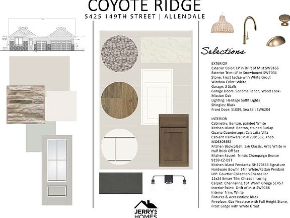 Welcome to the Allendale plan by Jerry's Homes! This 1800 sqft ranch has so much to offer! Split bedroom set up gives everyone privacy. Spacious great room offers high ceilings, floor to ceiling stone fireplace and lots of windows! The dining area is big enough for the largest of tables and opens out onto the covered deck. The white kitchen has a huge island, quartz counters and soft close drawers and a pantry. The master is tucked in the back of the home, it has a private bathroom with double sinks, a large tiled shower and a huge walk in closet. At the garage entry there's a mud room with lockers. LP SmartSiding and stone exterior. Coyote Ridge is located near lots of parks and trails! Jerry's Homes has been building since 1957!