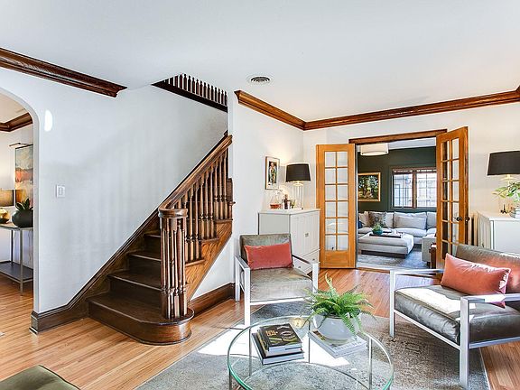 Classic Tudor overflows w/charm thanks to thoughtful updates & gorgeous finishes throughout. Sun-splashed main level lays claim to formal LR, DR, kitchen, informal dining, & family room; could you ask for more? Each space is adorned w/beautiful light fixtures, gleaming hardwood floors, & original millwork. Whip up your favorite recipes in the updated kitchen (abundant cabinetry & new SS appliances found here). Step through the arched doorway to the informal areas where a large bay window & french doors create spaciousness. Retreat upstairs to the breathtaking primary suite - vaulted ceilings & skylight make this a true oasis. The exquisite ensuite, ¾ bath boasts a tiled walk-in shower w/brass fixtures (incl. rain shower head). What a delight! 2 BDs & full bath are nearby. Remodeled LL is home to a 4th bedroom, ¾ bath, laundry, & playroom. Private backyard offers full fencing, patio for soaking up the sun, & a modern office attached to the 2-car garage! Don’t miss the new roof & boiler.