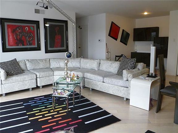 Stunning Contemporary Condo, Recent renovations include attractive bathrooms, beautiful wood floors in dining room and living room, kitchen with stainless steel appliances. The kitchen and dining room features an open floor plan. Living room offers a built-in bar area for entertaining. Spacious master bedroom suite with dressing area and two walk in closets. In unit laundry room off the kitchen. The building has a roof top deck.