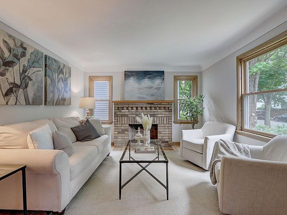 Charming 1.5-story home located only blocks from Lake Harriet, parks, restaurants, convenient access to highways & more! Fresh interior paint, refinished hardwood floors, new carpet & new lighting, new furnace in 2022. Sun-filled living room with wood-burning fireplace. Open kitchen & dining. Dining has access to a fabulous 3-season porch which leads out to the patio & backyard! Kitchen includes newer cabinetry & tile backsplash. 2 nicely sized main level bedrooms with hardwood floors & nearby full bathroom. Adorable upper level is spacious & perfect for a primary bedroom or guest bedroom with lots of storage throughout. Partially finished lower level newly carpeted, with the potential for a 4th bedroom, an additional bathroom & family room with fireplace, laundry & more. Fantastic backyard with lush landscaping & perennials, new patio & detached 2-car garage. *Note: home is professionally staged*
