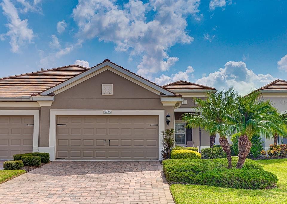 Welcome home to this stunning and meticulously maintained villa in the highly sought after gated community of Fairfield. This immaculate 2 bedroom plus den featuring an open concept floorplan that allows easy living and entertaining. As you step inside, you'll immediately notice the attention to detail and the array of desirable features. A chef’s delight, the kitchen is equipped with shaker-style solid wood cabinets, granite countertops, tile backsplash, stainless appliances with a gas range, and a large island overlooking the spacious living room. The dining room is open to the main living area for easy entertainment. The tray ceiling adds an elegant touch to the living space, creating an open and spacious feel. Plantation shutters add to the tropical Florida feel. The large sliding door open to screened lanai overlooking lush greens that provides the perfect outdoor oasis allowing you to relax and enjoy the warm Florida sun. A large owner suite at the rear of the home has his-and-her closets, separate vanities, and a walk-in tiled shower. A split bedroom floor plan for added privacy makes the 2nd bedroom and bathroom perfect for guest. The den provides a quiet office space, media room, or additional guest space. Fairfield offers a low-maintenance lifestyle to ensure ample time for enjoying the community amenities; resort-style pool and spa, clubhouse, fitness center and planned community activities. Conveniently located within I-75 for easy access to Lakewood Ranch, Bradenton, and Sarasota. Minutes away from Publix, a plethora of shops, restaurants, the Sarasota-Bradenton International Airport, cultural activities and entertainment, and the beautiful Gulf Coast beaches. Welcome home to Fairfield, where your exceptional Florida lifestyle begins.