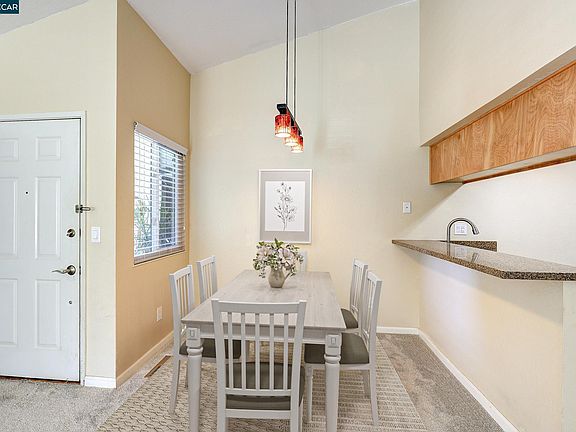 Open House Sat & Sun. 11-2. Condo on a single level, move-in ready. Charming end unit, no neighbors above. Updated kitchen with stainless steel appliances, breakfast bar. Remodeled bathrooms, new carpet. Cozy family room with a fireplace. Private patio, close to parking and swimming pool. Conveniently located near Shopping Centers, Restaurants, and the Concord Pavilion, on the Concord/Clayton border. *Home is virtually staged.