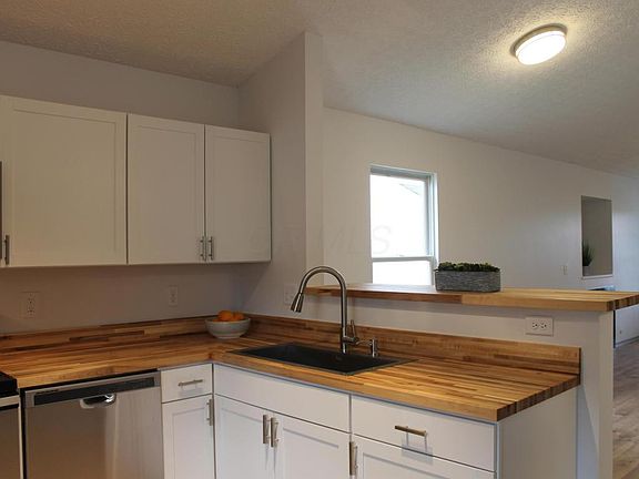 Pristine renovated ranch home in popular Canal Winchester. Open floorpan with vaulted ceiling and gas log fireplace. Brand new kitchen features all new white shaker style cabinets with brushed nickel hardware, butcher block countertops, new open basin sink with rack, new faucet. All new stainless steel appliances. Wood laminate wide plank flooring. New carpet in bedrooms. New bath vanities, lights, mirrors and flooring. All new painting includes trim, doors, walls and ceilings. New back door, new door to 2 car garage. New hot water heater. Great view from covered front porch looks out towards green space with two ponds.