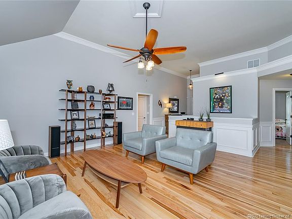 If the perfect home exist this is it! This all brick 4 bedroom 3 bath ranch with a finished basement is located in Hawthrone Glen, one of Southern Indiana's most sought after neighborhoods. The extensive landscaping accents this beautiful home and creates an abundance of curb appeal. Entering the home you'll immediately notice the real 3/4' hardwood that runs throughout the main living area. The floor plan feels extremely spacious do to the vaulted ceilings and openness from the living room into the eat-in kitchen. The bedrooms on the main floor are split to offer a true master suite and 2 guest bedrooms. The kitchen is fit for a chef with a commercial gas range and hood. Downstairs you have a large family room that is perfect for entertaining, large bedroom, full bath, storage room, and utility garage. Exiting out of the walkout basement you step into a true landscaping masterpiece. Full of mature plants and trees this backyard is extremely private and is sure to create the perfect area to relax and unwind. With no homes behind you and being just a short walk to the clubhouse and pool this lot location within the development is ideal. The current owners truly have expressed their pride of ownership in this one and feel confident you will as well. Dont miss the opportunity!