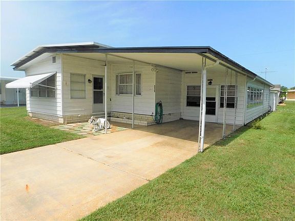 Pack your bags and come enjoy the sunshine this coming winter. This double wide has a great location close to walking trails and community ponds. Home offers 2 BR/2 BATH large Florida room with 1390 sq/ft living space with eat-in kitchen, newer AC/central heating system, metal roof over, and on sewer. This home is located in Betmar Acres 55 plus community where you own the land with a LOW HOA fee of only 299.59 per YEAR. This home features built in cabinetry, a kitchen with many updates, and plenty of storage inside and out. Florida room (11'x24') is located off kitchen with double sliding glass door. Living and dining room are open which is great for entertaining. Off the living room by another sliding door is enclosed sun porch which looks out on the front yard. Master suite is at the rear of the home with mirrored closet, master bath area has walk-in closet, and step-in shower. Guest bath has tub/shower combo across from bedroom 2 for your guests. Laundry room with storage above and work shop is located off the Florida room. Don't forget it's near the 27 hole golf courses, tennis/pickle ball courts, 3 clubhouses, shuffleboards, pools, hot tubs, walking trails and many clubs and activities. Come enjoy all that this community has to offer. Betmar is conveniently located near restaurants, shopping, & medical facilities. Call to see this home today. NOTE: Per Sellers direction home is not for sale with LLC's or Co-op's. * Additional fees may apply*