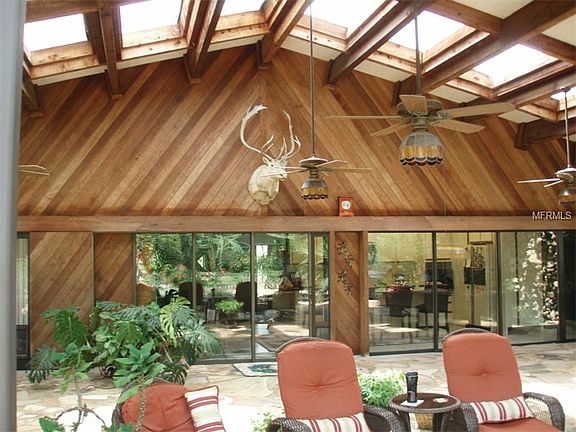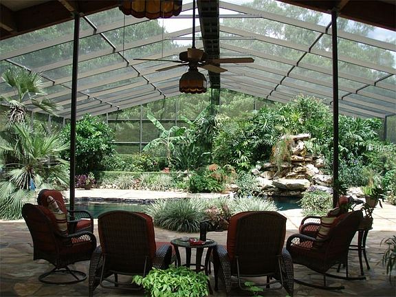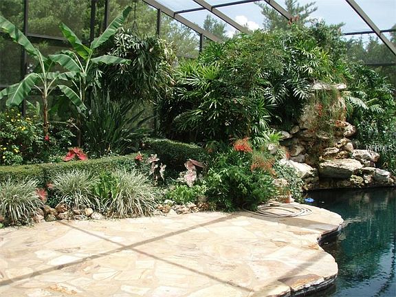 Welcome to paradise. This 4 bedroom 2 ½ bath home offers a private oasis you will love. Almost 1 acre totally fenced and completely landscaped boast of meticulous care. The home has a 2 master suites plus 2 more bedrooms, an office, a huge living room with a wood burning fireplace, a formal dining room and a spacious kitchen with great breakfast bar. The back lanai is a whopping 76 x 42 and it will stop you in your tracks. The pool has a Florida rock waterfall and all the flooring is Florida flagstone. There is a sitting area, an eating area and plenty of room to play pool and have a good time. The side yard has a fire pit for your enjoyment. The 5 bay garage has room for all your toys, including your RV & a workshop with lots of storage. All the grounds have irrigation & the well has a separate 5 horse power pump for it. Many more details for this wonderful home.