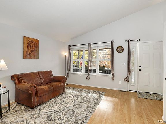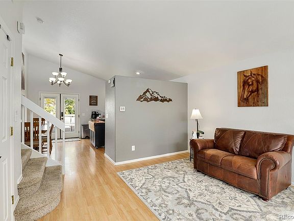 Classic design and a spacious floor plan await with this updated tri-level home on a quiet horseshoe-shaped street with beautiful mountain views! A charming front porch provides leads you inside where beautiful easy-maintenance laminate floors and tall vaulted ceilings welcome you in. Sure to please, the light and bright kitchen boast modern stainless steel appliances with a new dishwasher, ample expresso cabinets, newly installed herringbone tile backsplash, and concrete countertops. Step outside onto the backyard deck off the kitchen, extending your indoor/outdoor living space. Take in the serene private backyard setting with striking mountain views, mature trees, and no neighbors behind thanks for a greenbelt path access from the backyard fence gate. Back inside, the lower level features a fabulous family room anchored by a cozy gas-burning fireplace, a home office with an extensive built-in desk, and a convenient ½ bath and laundry. Upstairs, find 3 generously-sized bedrooms, including the master suite with en-suite bath. The finished basement bonus room with attached ¾ bath makes a great teen hangout, playroom, or 4th bedroom. Solar panels provide incredibly efficient lower-cost energy bills. Additional newer updates include a furnace and central A/C. Great location in award-winning Cherry Creek Schools and quick access to Southlands shopping, Aurora Reservoir, and E-470 to get you to the airport quickly, this lovely move-in ready gem needs nothing for you to do but move in and call it home! Solar Panels are included with purchase. The buyer will need to qualify and take over payments for the purchase.