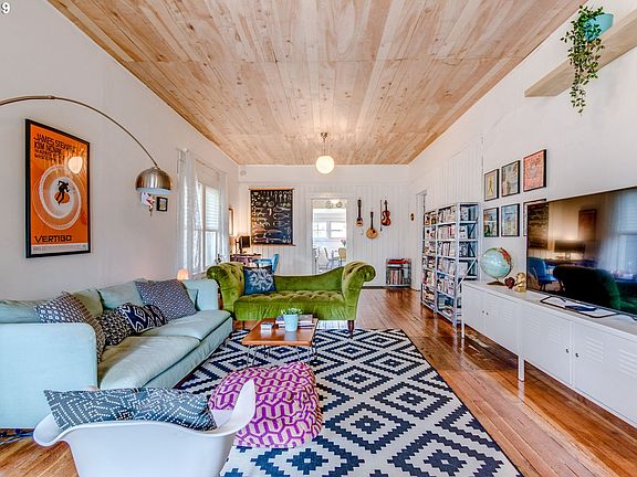 Charming Craftsman Bungalow in SE Portland! Generous covered front porch w/ swing. Hardwood flooring & high tongue & groove ceiling! Open concept living room & dining! Updated kitchen w/ stainless appliances, dining nook w/ exterior door to backyard & utility room. 2 spacious bedrooms sharing a walk-in closet. Large full bath w/ skylight. Basement w/ exterior door. Fully fenced large backyard features, patio w/ pergola & raised beds. [Home Energy Score = 4. HES Report at https://rpt.greenbuildingregistry.com/hes/OR10027782]