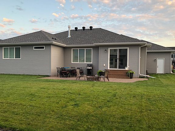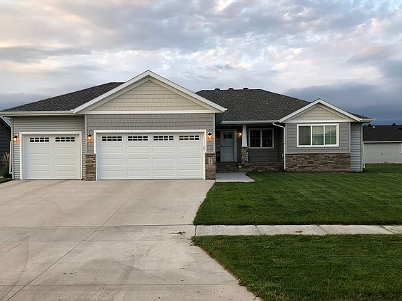 Come check out this beautiful, move-in ready rambler. Enjoy the open concept kitchen, living and dining room with custom built-in cabinets and gorgeous fireplace feature with a ventilation system. Relax in the master suite with a private bathroom featuring a gorgeous tiled shower & walk in closet. This home is ready for entertaining with a stamped concrete patio right off the dining room. Don't forget the huge, finished garage with a floor drain. Enjoy unlimited potential with the unfinished basement plumbed for two more bathrooms & a wet bar. Come and see this home before it is gone!
