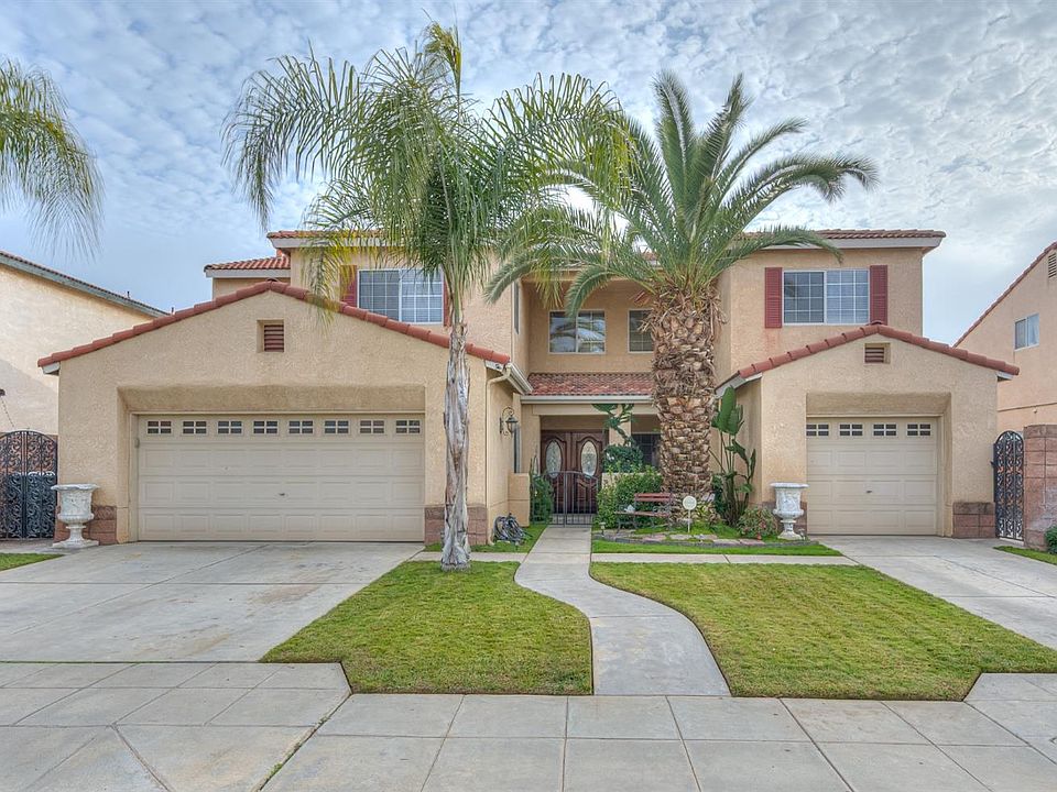 Fall in love with this gorgeous 5 bedroom, 3 bathroom home located by Central East High School. Upon entry, you are greeted by spacious living room with high ceilings, a gas fireplace, and opens to the dining area. Downstairs you will find a bedroom and bathroom perfect for hosting guests or an MIL unit and a separate office with no closet. The laundry room and two separate garages (2-car garage and a 1-car garage) complete the downstairs area. Upstairs find 3 additional bedrooms, including a huge Primary bedroom with walk-in closet and private bathroom featuring a soaking tub and separate shower. The backyard is a beautiful place to relax and host events with plenty of patio space and grassy area. Plus, a covered above ground spa and fruit trees including, oranges and a pomegranate tree. No houses directly behind the house adds to the privacy of the home. Located near Central Unified schools, neighborhood parks, and close to freeway access. Don't miss out on this great opportunity.