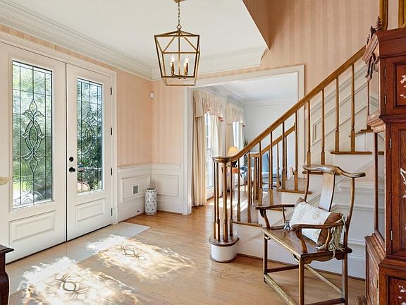 - Double Vanity, Walk-In Closet(s), Vaulted Ceiling(s), High Ceilings, Gas Logs, Separate Shower, Bookcases, Cable TV Connections, Entrance Foyer, Hardwood Floors, Tile Bath, Tile Floors, Whirlpool Bath, Carpet, Tray Ceiling(s), Rear Stairs