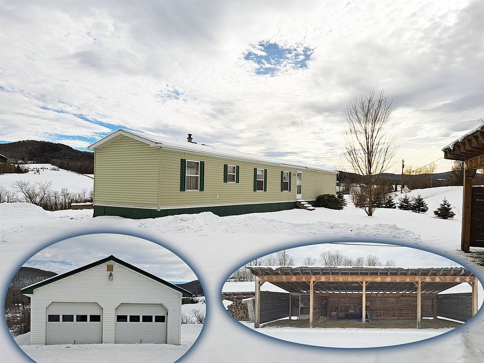 Looking to get started or downsize, or even have just a nice Vermont getaway? This 2001 single-wide mobile home has 3 bedrooms, 2 full bathrooms, is on a concrete slab with tie-downs, has a detached 2 car garage with storage above, and a 4 stall sturdy lean-to/shed, all on 5 picturesque acres just outside historic Irasburg Village. Home is wired for a generator and is in good shape. Garage has new metal roof. Land has a great slope for winter sledding parties, apple trees and blueberry bushes, with a couple raised garden beds. Conveniently located near the VAST snowmobile and VASA ATV trails for summer and winter recreation. Make this your affordable permanent home or your Vermont getaway property. Ask your agent or lender for financing options for single-wide homes. Motivated seller says make an offer!