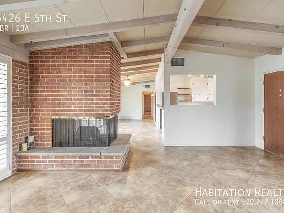 Well loved mid-century brick ranch is chock full of features and feels. Vaulted beamed ceilings, exposed brick walls, generously sized rooms and gorgeous views welcome you home! Focal fireplace adds extra ambiance to the already lovely living and dining spaces. Kitchen offers loads of storage and includes all appliances. Wake up to sweet vistas everyday from this primary bedroom with its updated bath and large walk-in closet. Hallway features built-in storage wall and large closet. Bedroom two is delightfully roomy and also has a walk-in closet. A spacious hall bath is adjacent to bedrooms two and three. Newer water heater and hvac with wireless thermostat. Laundry room is inside and washer/dryer are included. Then there's the fully fenced, brick paved backyard with huge covered porch, citrus trees, lovely vegetation all on drip irrigation, and more storage too! Plus plenty of curb appeal with a landscaped semi-circular drive, carport and great off-street parking. Community park has a lap pool, garden, playing fields and walking trails. Fabulous central location is: close to shopping, dining, foothills, and an easy commute to downtown, UA or DMAFB. This is the perfect place to hunker down a while! $2650 due at lease signing. This includes an $2000 refundable security deposit, $400 non-refundable cleaning fee, and $250 non-refundable leasing fee. Plus, first month's rent or prorated amount. Tenants responsible for all utilities. Pets: up to two well behaved and loved ones considered with $200 non-refundable per pet fee. All tenants must have renters insurance. No smoking inside NOR outside. Application fee $55 per person, applications from all applying must be provided for processing, guarantor may be required, all applicants must pass: credit, criminal, and prior eviction screening. Enrollment in Resident Benefits Pkg optional. Professionally managed by Habitation Realty. Equal Housing Opportunity. 20 30 Club Park Covered Patio Fire Pit Fruit Trees Gardening Area Highland Vista Park Landscape Irrigation Mature Landscaping N/S Orientation Semi Circular Drive