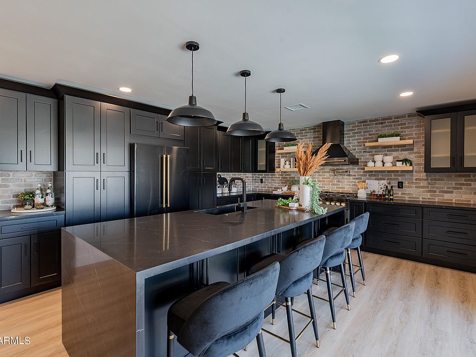 Signature touches and an elegant modern design come together in perfect harmony in the reimagination of this beautiful home. Located in the heart of Scottsdale, this home is bringing a new look to luxury. Features of note include a quartz Calcutta waterfall island, custom cabinetry, LVP flooring throughout, custom lighting and plumbing fixtures, a wine/ beverage station and unmatched craftsmanship. Beyond the surface no detail was spared, new plumbing and electrical, reinforced trusses, air ducts, and AC are all inclusive. Ideally situated near parks, hiking and biking trails, and minutes away from Scottsdale's best shopping, dining, sports venues, and night life. Like new, this home has been completely re-designed. A perfect little sanctuary in the city.