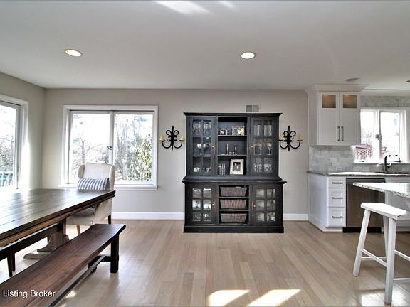Taking ''open concept'' to a whole new level, this gorgeous mid-century modern home features a sprawling open living, kitchen and dining area- all with huge windows to let in plenty of light. The remodeled kitchen is a dream- beautifully renovated with Barber cabinets that have soft close feature and stone countertops. This open first floor walks out to the huge back deck (overlooking the large inground pool) with access both off the dining area and the primary bedroom. Tasteful flooring, paint color and fixtures throughout. A huge primary bath, second bedroom, office and half bath complete the first floor. The lower level features an updated full bath with double vanities, large living space, cozy den with decorative fireplace and two more large bedrooms.