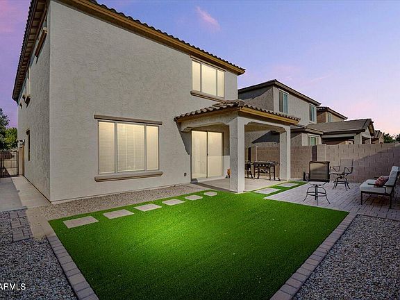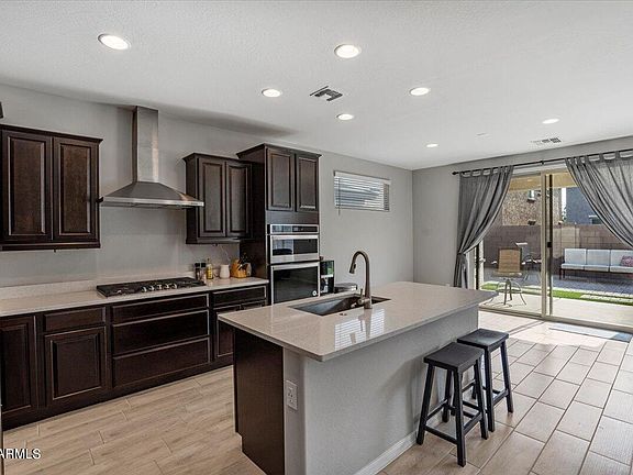 Large 4-bdrm home w/ main level den/office. Ideally situated kitty-corner from an open green space, sand volleyball court & children's play area. Step inside to find upgraded 8x24 ceramic tile wood-look plank flooring throughout much of the home. Kitchen upgraded w/gas range, SS appliances, quartz counter tops & eating bar. Main level den/office is currently outfitted with a custom sauna and upgraded 15amp outlet and breaker. Upstairs you will find the loft, master suite including large closet, double vanity sink & extra-large tile surround shower. The upstairs is rounded out with the laundry room, 3 additional bedrooms, 1 with its own full bathroom and another with a charming peek-a-boo view of the Superstition Mountains. Venture outside to enjoy a backyard complete w/covered patio. Located in the amazing Cadence community you'll have access to a workout facility, community pool with thrilling slides, lap pool, tennis courts, multiple children's play areas, a game room, an event center, and more! Restaurants, Black Rock Coffee, Mountainside Fitness and several other establishments conveniently located at the entrance to Cadence off Ellsworth Rd. Easy freeway access, Steadfast Farms, and downtown Queen Creek are all located nearby this wonderful community.