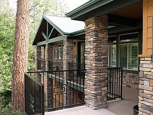 This one of a kind home was custom built by owners to take advantage of their large lot location next to the State Park with panoramic views. Quality from top to bottom, the unique construction of this home, combined a high end modular home set on a 10 Ft high wood frame foundation that provides another 1658 sq. feet of additional, partially finished, living space. The upper level is fully handicapped accessible, and has no steps from the street or inside. The interior floor plan has 9 ft. ceilings with coffers in 4 rooms, 14 ft. tall dormer windows in the living room that frame the spectacular panoramic views of mountain ridges and blue skies. The large master bedroom with walk in closets and top of the line master bath with wheel chair accessible high end shower, is on one side of the home and two bedrooms and bath are on the other side with the open kitchen/living room with fireplace in the middle. Oversize attached finished and insulated 2.5 car garage with work shop has v