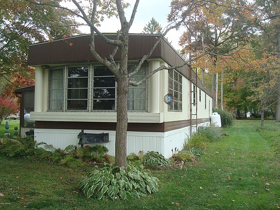 Berry Lake connects to approximately 120 Acre -5 lake Chain of great fishing lakes! Well maintained 2 bedroom Duke mobile with newer rubber roof, newer kitchen appliances, newer skirting and newer well pump. You will enjoy the wonderful accent lighting in the living area with 12 feet of windows facing 110' of water frontage with amazing views and a great deck for lake side fishing. Super large level water surrounded yard for outdoor games with mature trees for shade. Rest a while on the swing and enjoy the warmth of the fire pit. Wonderful screened porch to take in the great outdoors rain or shine without the bugs. Handy workshop has cement floor, electric and double doors for large projects. Fishing the waters or toasting your marshmallows over the crackling fire with friends around