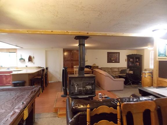 This 5BD 2 BA is just waiting for someone to add their special touches and make this your family home. Large game room/family room with wainscoting- Living room and dining room surround the large wood stove for those family gatherings. Kitchen with breakfast bar-dining area - large laundry room and HUGE pantry/storage area. Master with fireplace and his and her closets. All bedrooms are nice size. The back yard has plenty of room for the kids to play or use part of it for horse privileges. Metal roof, brick exterior - barn/garage and large gate.
