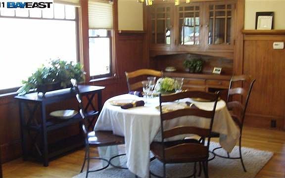 REFURBISHED CRAFTSMAN STYLE ON QUIET STREET! Old world charm in and out! 2 bedrooms, bath! Private sun room or master retreat! Living room features fire place surrounded by book cases and cubby holes! Original dark wood trim! Formal dining room has dark wood wainscoting, picture ledges, built in glass faced china cabinet! Retro remodel in kitchen with lots of stainless steel! Cute breakfast nook too! Refinished hardwood floors! Well cared for home and area!