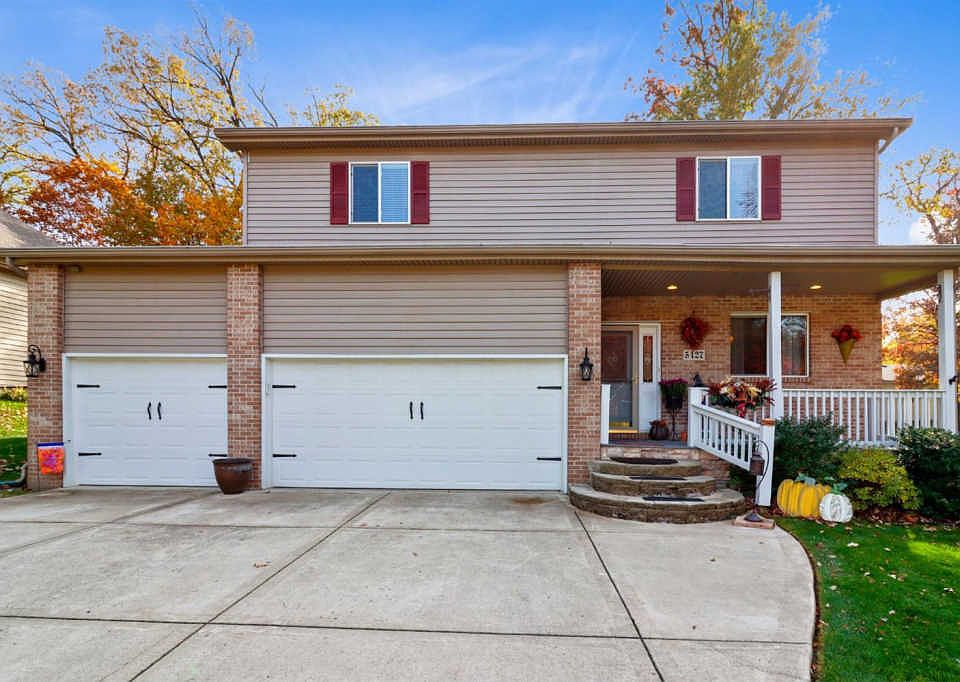 Great location and open space comes with this beautiful 4 bdrm 2-story home! This home is situated in a semi-wooded subdivision with a walking trail, tennis courts and playground within walking distance. The main floor has 9ft ceilings, hardwoods/carpet, open kitchen with corian counters, huge pantry, breakfast bar and room with open concept to the great room. In addition, there is a 1/2 bath, office and a very large tiled 3-seasoned sunroom giving full view to the backyard. Upstairs are 4 large bdrms, master has a master bath with a jetted tub and large walk-in closet. Laundry room is on second floor for convenient proximity to bdrm closets! Basement has 9 ft ceilings, plumbed for a bathroom, storage shelves galore and ready to be finished as you would like! The 3 car garage and shed in the backyard give way to great storage space! Seller is providing a home warranty as well! Time to relax on the covered front porch and call this place Home!