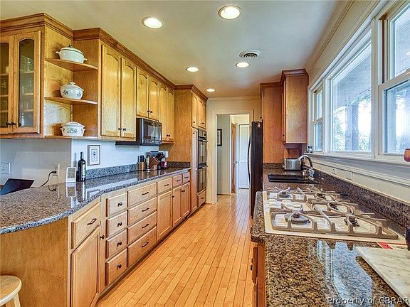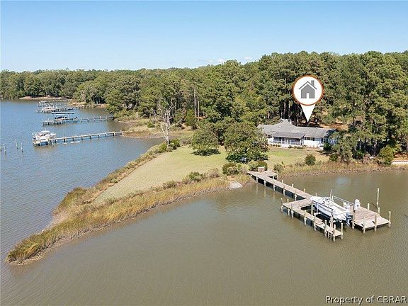 This is the property and home that dreams are made of! Location: Entrance pillars and crepe myrtle lined paved drive welcome you to a peaceful, picturesque, 2.86AC point of land with long natural waterfront shoreline on sought-after Wilson Creek, off the Ware river, Mobjack Bay and beyond to the Chesapeake Bay. Dock and navigable water for boating and fishing. Totally updated in 2004 and currently refreshed. Designed for ease of living and enjoying life from relaxing on the screened porch, gourmet cooking, watching sports, tinkering in the garage or gardening. Fenced child and pet yard. Grab a book off the built-in bookshelves and curl up by the fireplace or take a walk along the water! See it today!