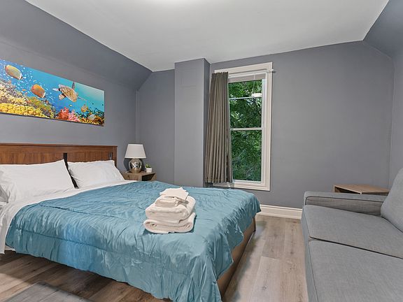 WELCOME TO NIAGARA FALLS! Prime Location: 4-min walk to Clifton Hill & Niagara Falls With Booster and Pack N Play Comfortable Stay: 2-bedroom unit with 2 Queen beds, sleeps 4 Entire Unit: Private space, perfect for families or couples Fast WiFi: 1000 Mbps with Smart TV for entertainment Fully Equipped Kitchen: Cook meals with ease Clean & Stocked: Fresh linens, towels, and toiletries provided Free Parking: Convenient and hassle-free All utilities included