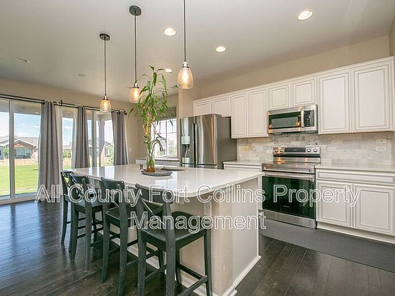 Gorgeous 2017 home in quiet Timnath neighborhood. High ceilings, quartz counters, engineered hardwood floors, high-end Samsung appliances. Primary bedroom upstairs with large ensuite bathroom and walk-in closet. High quality window coverings throughout. Fourth bedroom is on the main level with its own bathroom. Two-car garage. Enjoy a spacious backyard overlooking a green field, and just a 3-minute walk to a scenic pond with a walking path. Pets are negotiable, but note that it does not have a fenced yard, so it may not be a good fit for some dogs. Located in a top-rated K-12 school district, only 5 minutes walk from Bethke Elementary. Community amenities include an outdoor pool, playground, sports fields, and a large dog park. All lease applicants will submit a supplementary pet application through Pet Screening that will indicate one of the following: 1) that you have pet(s); 2) that you have an ESA; or 3) verify that you have neither pets nor an ESA. This Pet Screening application must be completed and an associated fee paid prior to our consideration of your application (there is no associated fee for no pets/ESA). Approved applicants with pets pay a one-time pet processing fee of $150 prior to lease signing; and advertised rent will be increased by $25/month/pet. NO SMOKERS.