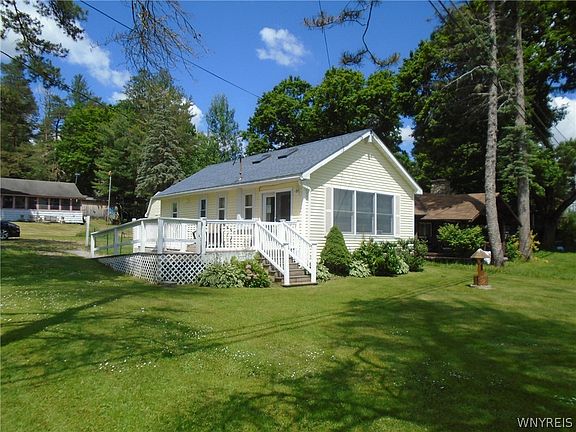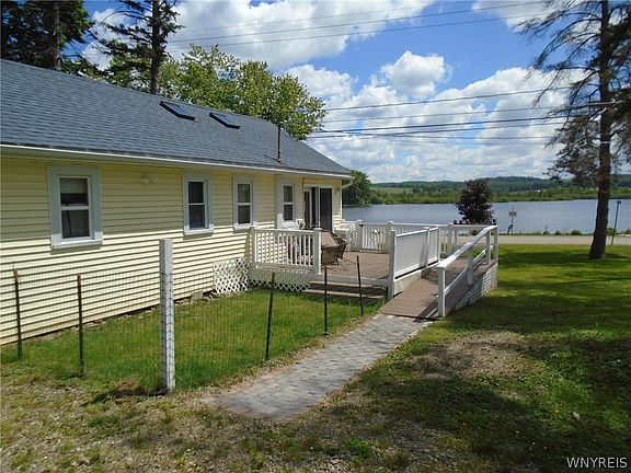 Peaceful well maintained lake front cottage. This is a gem. Two bed pine paneled cottage facing Java Lake. New laminate floors, new roof (3 years), Nice deck with ramp. Great corner lot. Furnished including deck furniture. Internet is available. New pellet stove for those late fall nights. There is a colony fee of $150 annually used to care for common areas. No motorboats allowed. There is septic and well. Well water is not suitable to drink. There is a water cooler included for drinking water. Owner advises to bring own drinking water. Shed is included. Showings start immediately with offers reviewed as received.
