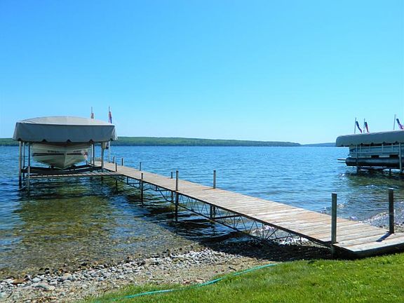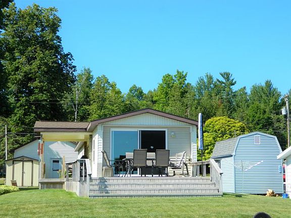 Here is a great summer cottage on Hubbard Lakes West Shore! Offering 50 feet of, walk right in, waterfront and 194 foot deep. This 1983 Mobile Home is completely renovated with drywall ceilings, white-washed tongue & groove walls, new carpet, new windows, new roof (on home and garage), central air, natural gas, and comes TURN-KEY, completely furnished. 980 square feet, 2 bedrooms, 1 Bath. 20 by 22 detached garage, paved driveway, storage shed, and is nestled up close to the waters edge. 8 foot lakeside door-wall, just off the kitchen, leads you to the 16 by 14 deck, spacious yard, bonfire pit and just steps to the waters edge. This is a great, affordable, family cottage that is completely updated and ready for you to enjoy. Dock Included. New 5,000 pound, 10 by 26, electric hoist is also for sale. Crystal Clear, Spring Fed, All Sports Hubbard Lake, with Hard Sand Bottom. Gorgeous views of Hubbard Lake and it's Mesmerizing Sunrises.