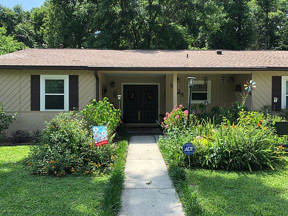 It is in Valwood neighborhood (original parade of homes model) 1690 sq. Ft. with large inviting front porch, oversized patio for entertaining. Listen to the sound of birds and trickling water from the fountain/pond while on the patio. Updated throughout in 2017 new double panel hurricane rated windows (lifetime transferable warranty) and garage door, exterior also painted in 2017, kitchen remodeled with granite and upscale cabinetry, and stainless steel appliances. Flooring is laminate throughout except for sun room and bathrooms which are tile and bedrooms and hallway are carpeted. Beautiful stone wood burning fireplace in living room with vaulted ceilings, sky light in master bathroom and a walk in closet. Sun lamps with timers in both bathrooms to take the chill off in the winter while showering. Lots of storage with easy access attic space, deep linen closet, entry closet, and 10x16 shed. Sun room is a large 23x10 area with wall of windows looking onto backyard and separate a/c heating unit for additional comfort. Irrigation system for entire property and rain barrels attached to gutters for maintaining gardens and conserving water resources along with 4x16 raised self-watering vegetable garden. Open and bright throughout the house. There are no HOA fees for this community. For viewing the home call 352-281-9737 by appt only and no realtors or solicitation.