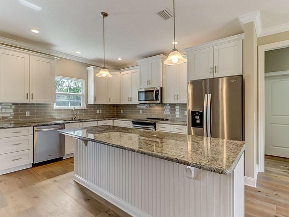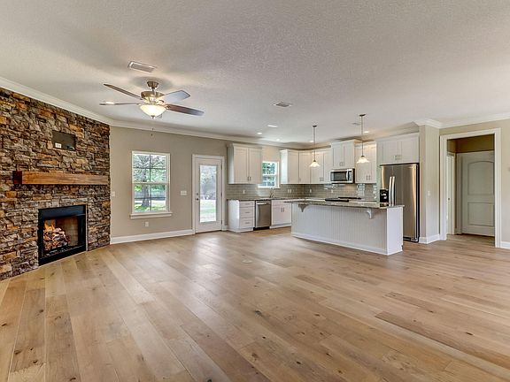 CALLAHAN NEW CONSTRUCTION ON 1 ACRE! This quality built 3/2 new construction brick home is just waiting for rocking chairs and relaxed conversation on the spacious front porch! White Oak hardwood floors and a natural stone gas fireplace greet you, creating an attractive and inviting warm welcome. The kitchen is bright and elegant with granite countertops and island, 42' soft close cabinets, and Whirlpool appliances. Neutral paint, 9 ft ceilings, and crown moulding add a special touch to the open concept living and dining area. The owners suite offers privacy, comfort and plenty of natural light - don't miss the gorgeous claw foot bathtub and marble style tile in shower! The large backyard is partially fenced with a covered lanai - plenty of room for your boat or RV. One year warranty.