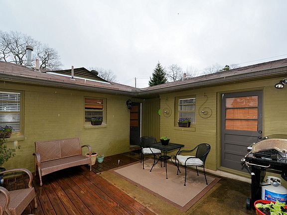 Don't miss this this charming Crestwood rancher! It has gleaming hardwood floors, crown molding, recessed lighting, and a painted brick exterior with Mahogany and glass front door. The kitchen is beautifully updated with granite counter tops, tumbled marble backsplash, and stainless appliances. Wonderful deck overlooks huge level yard! Large master bedroom is private from other two bedrooms and second bath with a great office/play/laundry room right down the hall too! Basement is huge for plenty of storage! A must see and ready to move in ready for sure!