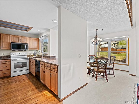 Fantastic open and bright townhome with 2 En-suites, an attached 2-car garage, a finished basement, and a big deck that overlooks the neighborhood green-space park for enjoying relaxing evenings in the desirable Georgetown Village community. The Trex-style front deck opens to a roomy tiled foyer and a spacious living room for entertaining with a 2-story vaulted ceiling, gas fireplace, skylight, and slider to a 15 x 12 raised Trex-style deck, built in 2022, in a fenced yard overlooking the neighborhood park green-space. The kitchen was updated in 2016 with hardwood floors, gorgeous light maple cabinets and slab granite countertop with seating and a spacious pantry for extra storage plus a dining area with Anderson windows where you can enjoy the view of the green-space park. The upper level has a private primary En-suite with a vaulted ceiling and a primary bath with a double sink vanity, soaking tub/shower, and skylight. A second En-suite with a full bath and walk-in closet plus a loft which would be a great office overlooking the living room complete, the upper level. The finished basement offers a large family room, laundry, and bath with a stall shower. This boutique community boasts a clubhouse, pool, tennis, and pickleball courts for you to enjoy. Great location near Little Dry Creek Trail, shopping, dining, library, Littleton schools, and DTC with easy access to I-25. Georgetown Village homes don’t stay on the market long, so this is your chance! Call today!