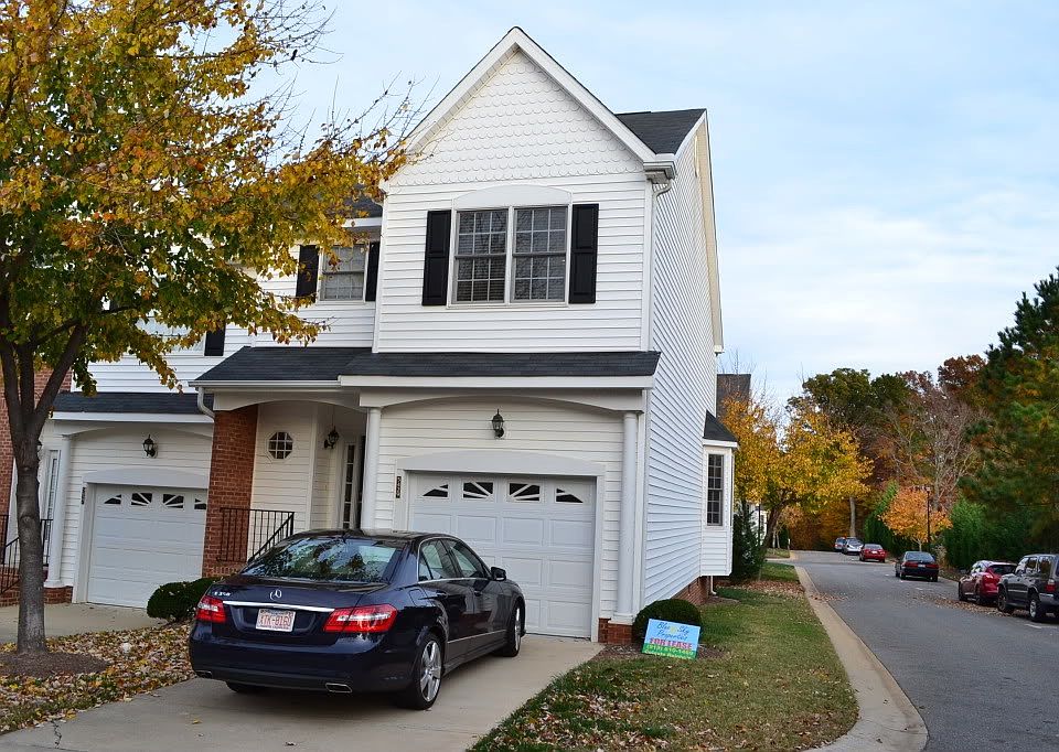 Spacious townhome, great location near Lake Johnson, NC State, Crossroads shopping. End unit features 1 car garage, deck with privacy fence and storage, HUGE master bedroom with 2 closets, double vanity sink, jet tub and separate shower, 2nd bedroom with private bath and walk in closet, upstairs laundry. Community includes pool and clubhouse.