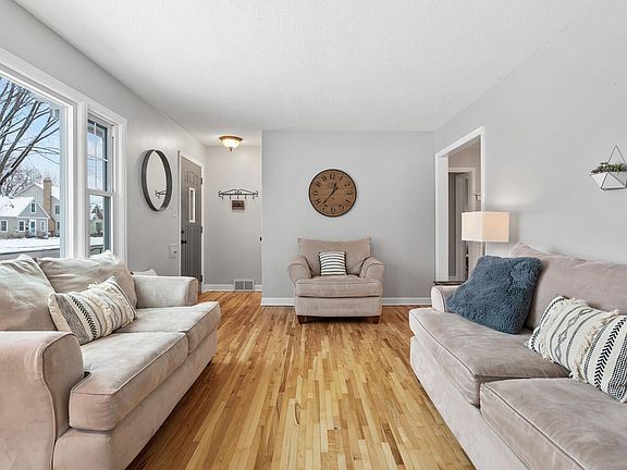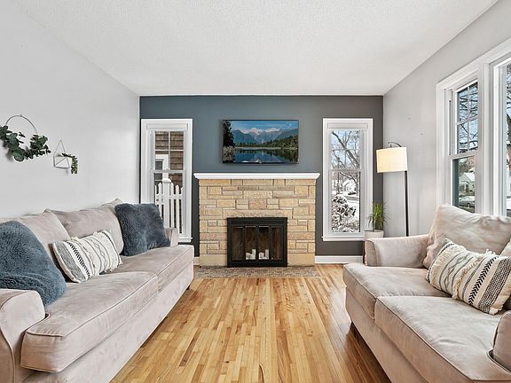 Gleaming hardwood floors, a brick-front wood burning fireplace & an abundance of natural light