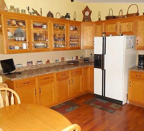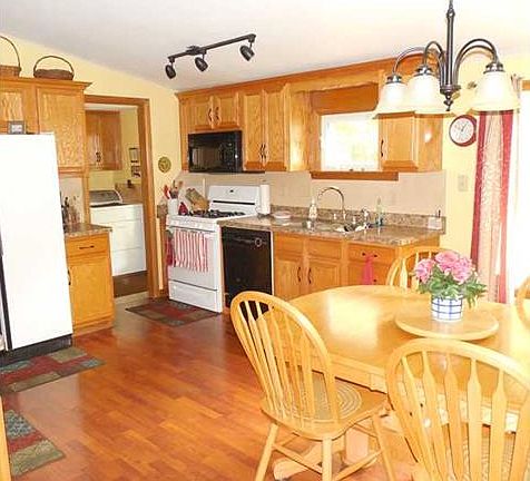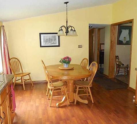 Beautiful wooded lot with extra garages and a walk out basement. Open dining room and kitchen with plenty of cupboards. 2 full baths and front and back porches. New drywall and windows, seamless gutters and roof in 2013.