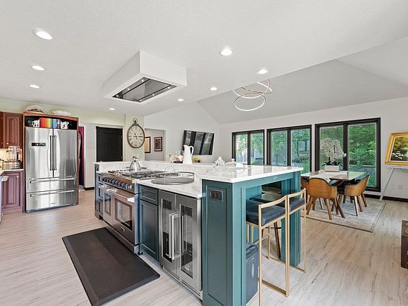 - Bar, Ceiling-9+, Ceiling Fan(s), Vaulted Ceiling(s), Walk-In Closet(s), Stone Counters, Eat-in Kitchen, Entrance Foyer, Kitchen Island, Split Br Floor Plan, Double Vanity, Wet Bar, Kitchenette, Stand Up Shower, Main Level Bedroom Suite, Formal Dining Room, Custom Cabinetry