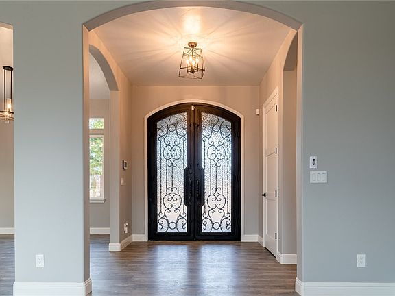 You need to see the gorgeous upgraded home that is brand new construction! AND seller will carry-back at only 4% interest. AND here's the icing on the cake! - the seller only pays $1300/year for insurance with Farmers!! The first thing you will notice is the gorgeous oversized 9-foot metal door. Glass panels open to let in the fresh air. Inside you will be impressed with the tall ceilings, upgraded fixtures, imperfect smooth wall texture, and 8-foot doors that all come together to give this home its feeling of luxury. The large open floor plan lets everyone be together and enjoy the cozy fireplace, even from the kitchen, with its new glistening appliances, including a griddle + 4 burner gas cooktop. Custom cabinetry with soft-close doors, a huge island with storage on both sides, quartz counters, a beautiful opalescent backsplash, and a walk-in pantry make this kitchen a dream! The bathrooms each have their own custom touches. The primary bath includes an oversized soaking tub, step-in shower, and dual sink vanity with quartz counter and custom-framed mirrors. Your guests have their own private powder room.