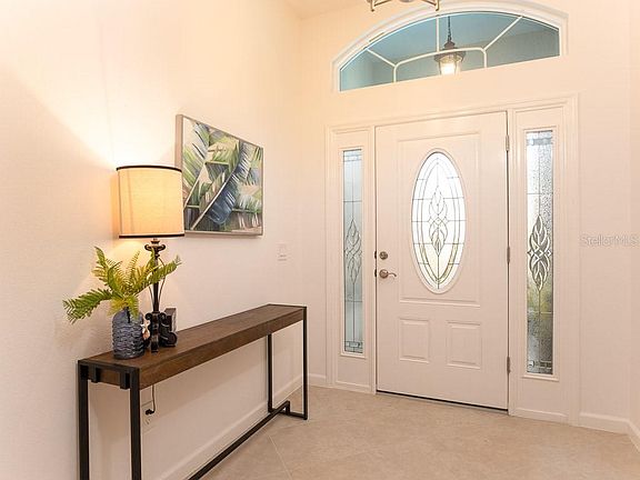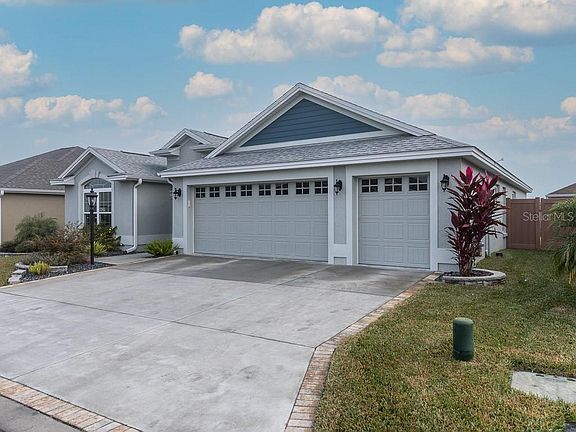 Welcome Home to this Veranda Mossy Oak model in The Village of Marsh Bend. This 3 bed/2 master- 3 bath - 2 plus golf cart garage is ready for you ! This block and stucco home has a space for all. With high volume ceilings and lots of good natural light, you'll experience the open floorpan and spacious rooms. Enjoy the white cabinetry throughout with pullouts in the kitchen. Gas stove makes cooking a breeze. The spacious master bedroom & bathroom has a tray ceiling and custom walk-in closet with shelving and hanging storage. The master bathroom has a walk-in Roman shower and double sink vanity with lots of countertop and cabinet space. Enjoy the Florida Sunshine and fresh air on almost 400 square feet of lanai open to the living and dining areas. Privacy provided by completely enclosed fencing in the back yard. Just a short distance to the Marsh Bend Recreation Complex to enjoy your outdoor sporting activities. Many new shopping and dining opportunities are around the corner. Don't wait ! Start enjoying your Villages lifestyle in this beautiful home.