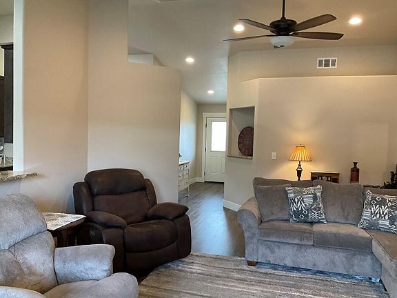 One Level and Low Maintenance close to town! Enjoy the established amenities of a newer home without the hassle and expense of new construction add-ons! This lovely, well maintained 4 bedroom, 2 bath home was built in 2019 and offers mature landscaping, sprinkler system, privacy fencing, 16 8 shed, custom window treatments, raised garden beds plus a walk-in-bath and shower combination in the primary bath. The great room open plan has a vaulted ceiling, overhead fan and coat closet in the entry. Laminate flooring through-out makes housekeeping a dream. The view from the rear of the homes sets this one apart!