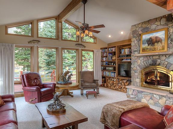 Immaculate, furnished home in a riverfront setting on 1.3 acres with approximately 500 feet of desirable Gallatin River frontage. Put on your waders, grab your rod, and walk to your private river bank for world class fly fishing. In the evening the sound of flowing water is the perfect backdrop for gatherings on the expansive riverside deck or for lulling you to sleep from the river facing master bedroom! This is the rarest kind of waterfront listing: convenient to BS but on property seemingly in a world of its own, neighboring over 400 acres of US Forest Service land directly across the river ( Durnham Meadows ). The main house has two bedrooms plus a large river facing bonus room currently configured as a bedroom with a king bed, living room with vaulted ceiling and pool table recreation area, large river facing windows and a massive wood burning river rock fireplace, well laid out kitchen and two car garage. Completing the compound is a summer guest cabin and free standing sauna.