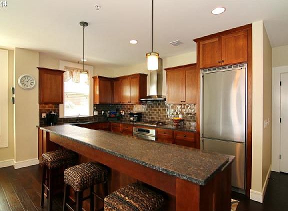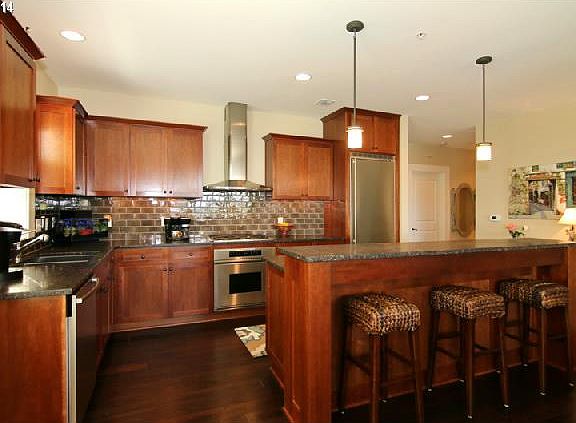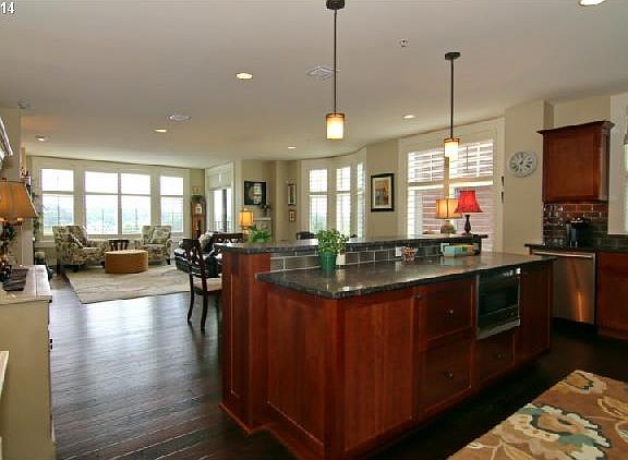 Heart of town LUX one level with many upgrades. Built-ins for closets, Murphy bed, desk, master suite king bed with storage galore. TWO PARKING SPACES. One storage unit in hall.Largest spacious corner unit with two decks with views Mt Hood. Steel and Concrete construction = quiet and quality! Only 30 homes in this complex. Walkscore 98!